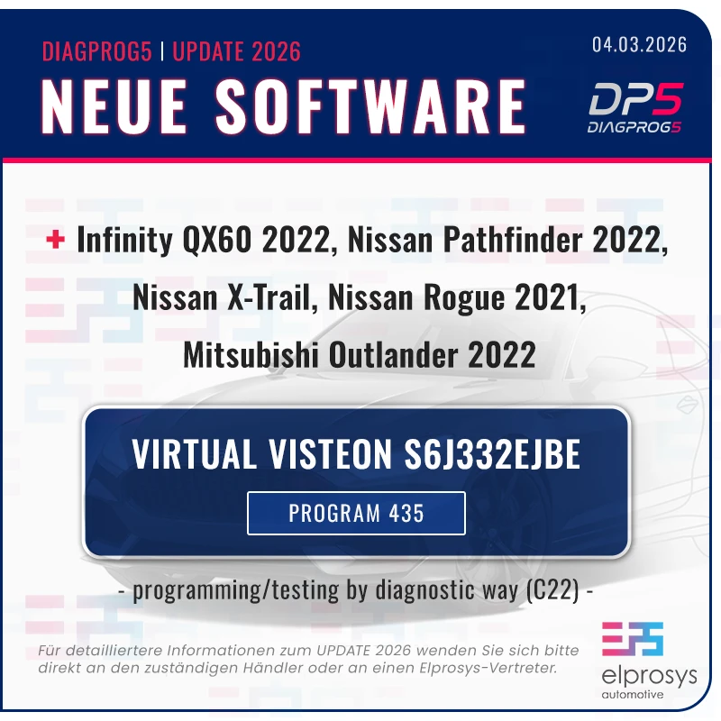 - Infinity QX60 2022, Nissan Pathfinder 2022, Nissan X-Trail, Rogue 2021, Mitsubishi Outlander 2022 - Virtual Visteon S6J332EJBE - programming/testing by diagnostic way (C22) - Programnumer 435.
