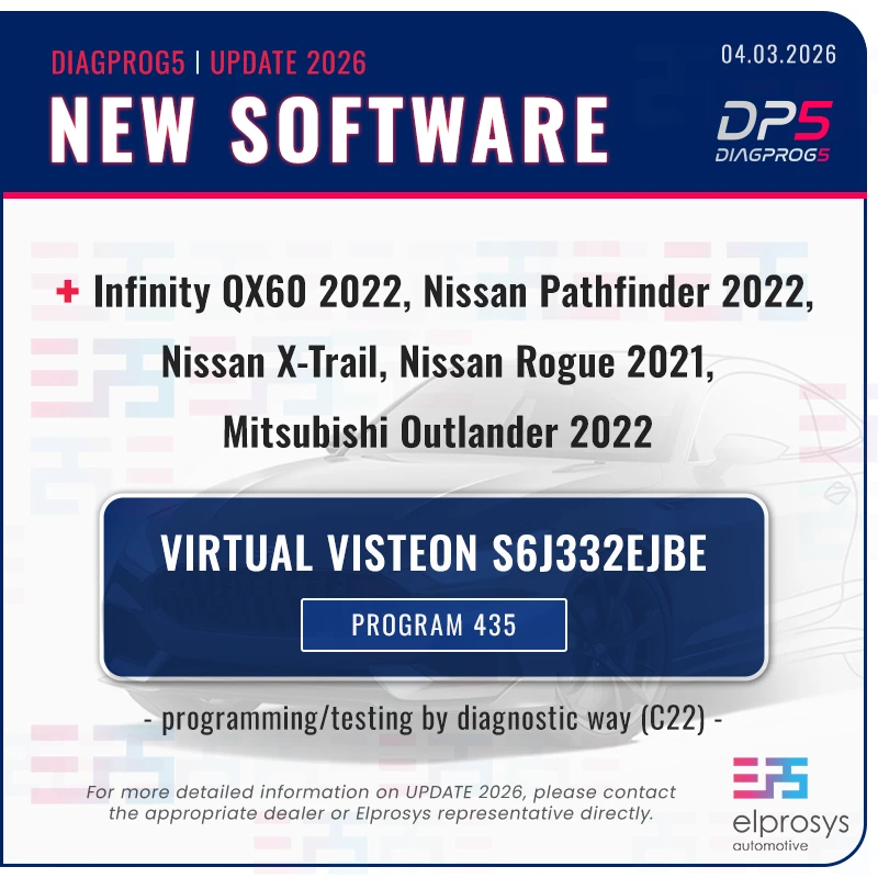 • Infinity QX60 2022, Nissan Pathfinder 2022, Nissan X-Trail, Rogue 2021, Mitsubishi Outlander 2022 - Virtual Visteon S6J332EJBE - programming/testing by diagnostic way (C22) - Program numer 435.