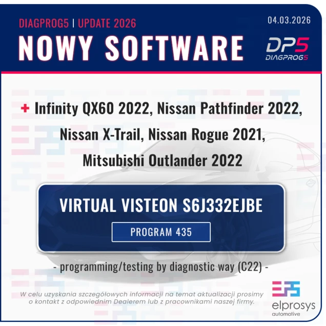 - Infinity QX60 2022, Nissan Pathfinder 2022, Nissan X-Trail, Rogue 2021, Mitsubishi Outlander 2022 - Virtual Visteon S6J332EJBE - programming/testing by diagnostic way (C22) - Program numer 435.